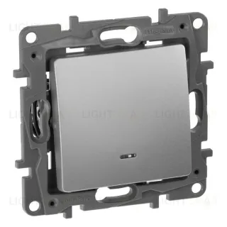 Выключатель-переключатель с подсветкой Legran Etika 10A (алюминий) 672415