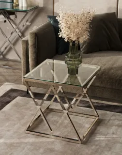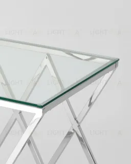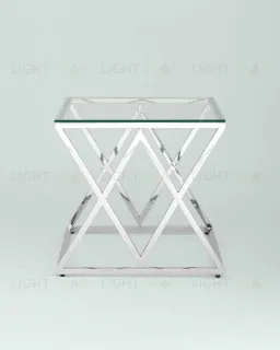 Журнальный столик ИНСИГНИЯ, благодаря оригинальной форме, станет ярким дизайнерским акцентом в интерьере. Каркас стола изготовлен из нержавеющей стали, столешница - закаленное стекло.